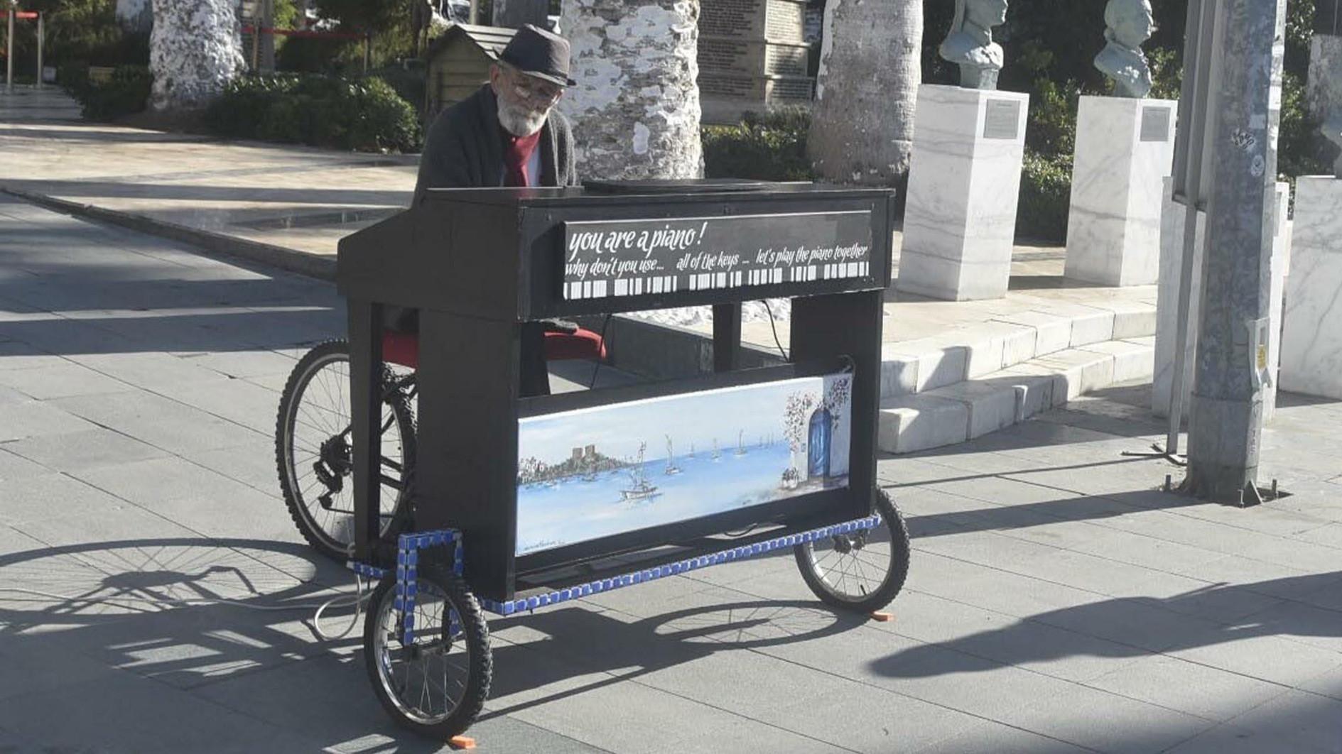 A man who lives in the southern province of Muğla's Bodrum district offers piano concerts to local and foreign tourists with his piano mounted on a specially designed three-wheeled bicycle.
