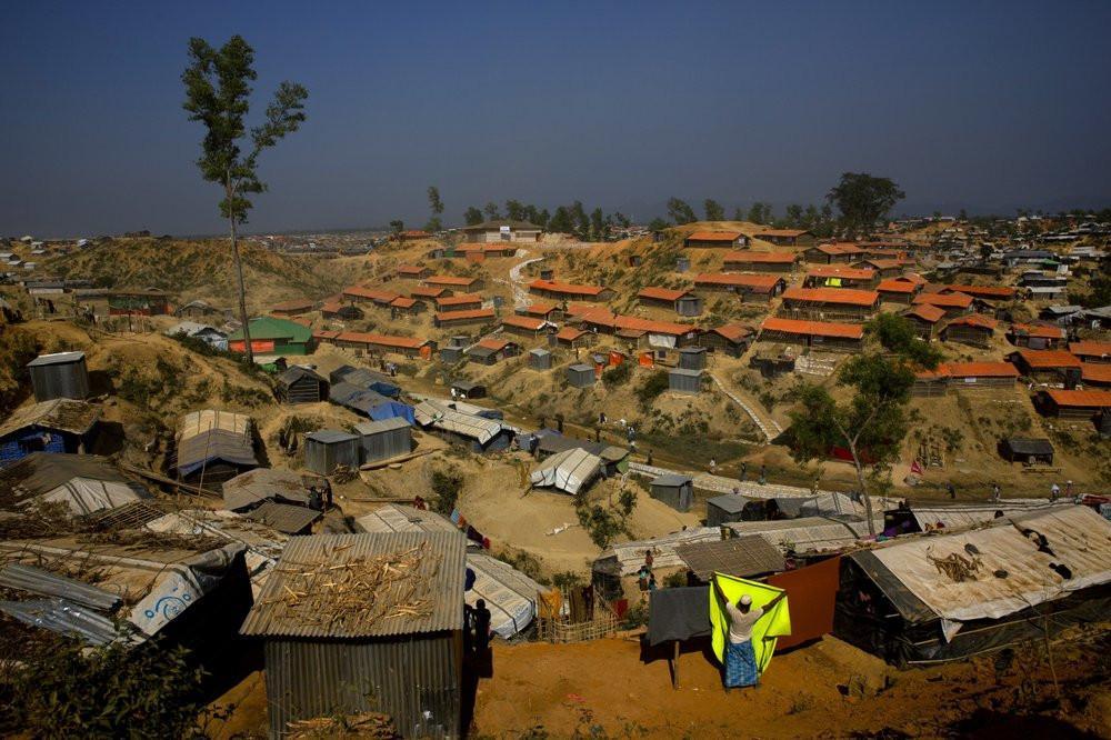 FILE - In this Jan. 23, 2018 file photo, a Rohingya refugee hangs a blanket out to dry at Balukhali refugee camp, about 50 kilometers (32 miles) from Cox's Bazar, Bangladesh. (AP File Photo)